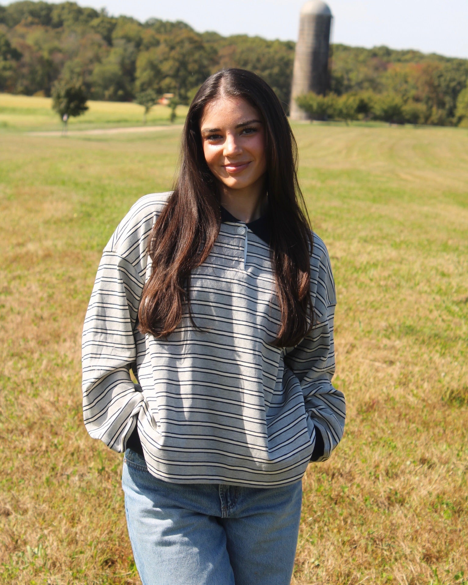 Grey With Navy Stripes